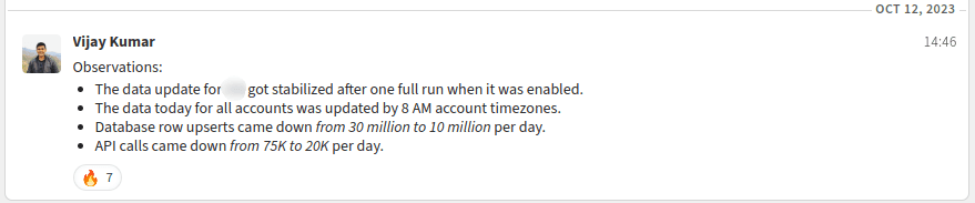 If the system takes too long to recover, that leads to further delays in the availability of fresh data. The internal teams often have to take corrective measures to fix the data state manually. Over and over again. No one likes that. Hence, the team came together to make a conscious decision not to shift goalposts any longer, stop hot patching, and instead work to eliminate this problem altogether.