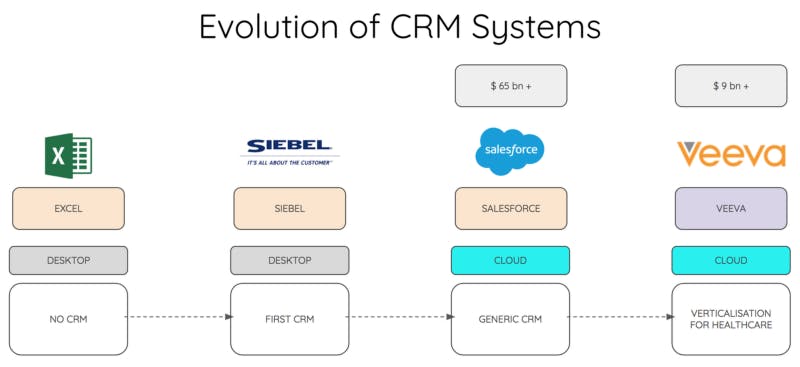 While we have seen multiple CRM solutions at various ends of the Market the next big shift happened with verticalization in the CRM space. An example of this is Veeva which took the Salesforce platform and customized it for the healthcare industry, taking context to the next level of granularity and applying it not just at a business function level but at an industry level.