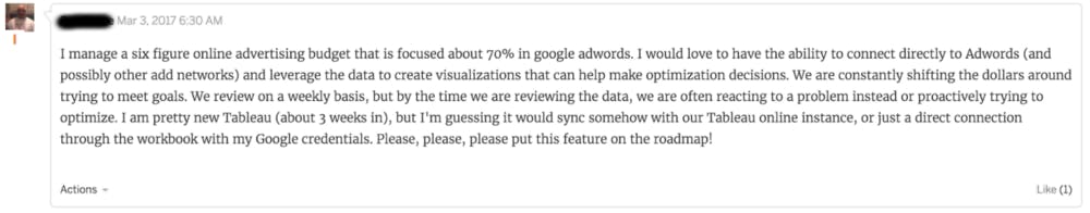 The other route is to use a BI tool like Tableau. Tableau brings a lot of power to the table in terms of both visualization and the ability to slice and dice data and has seen widespread adoption for Marketing teams handling large digital budgets for dashboarding and reporting.