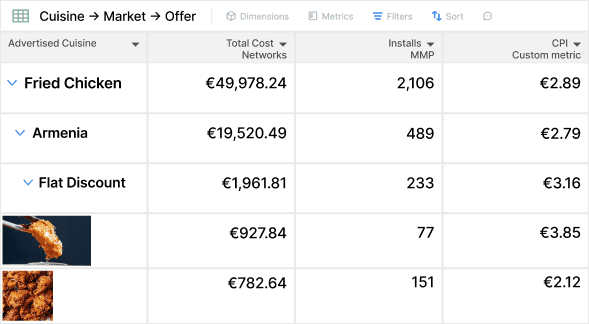 Analyze data at the creative, scene, or element level to identify valuable features across campaigns and channels. Uncover insights on what's working for which audience. Make more confident decisions on which creatives to double down on. Deep dive into detailed attribution data at the creative level, spanning from top-of-funnel to down-funnel metrics.