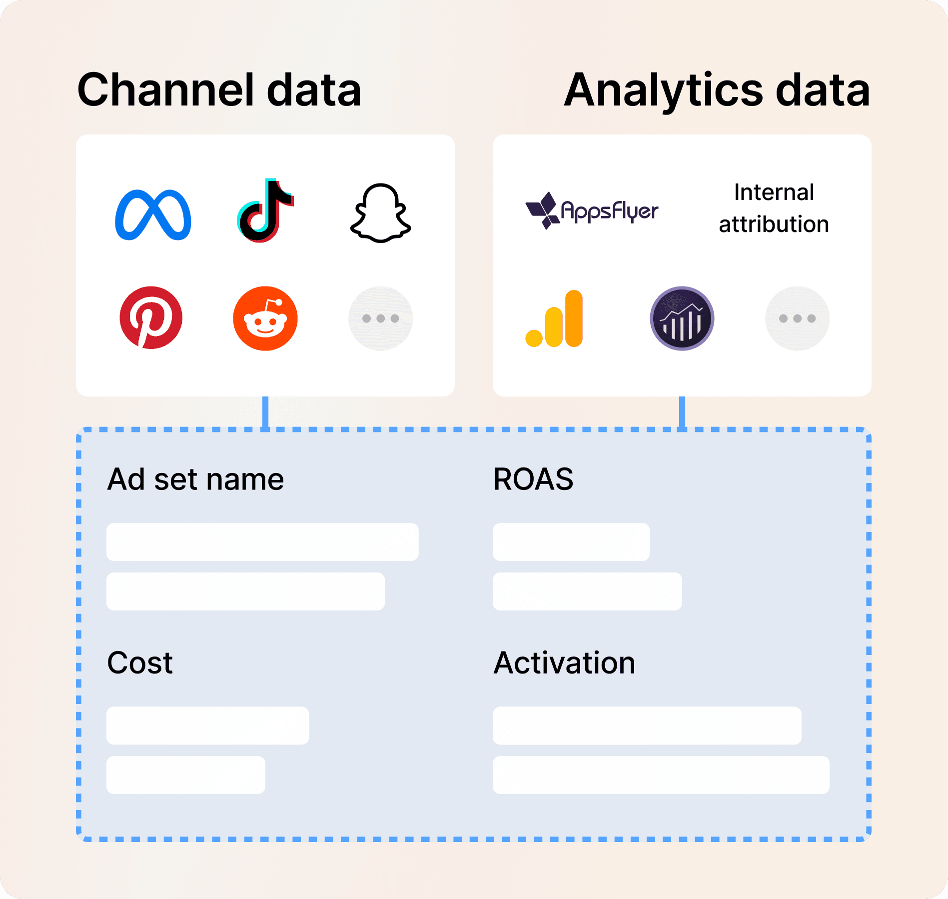 All your channel, attribution, measurement, and internal (budgets, targets) data is automatically blended and refreshed daily. No more switching between platforms, having to update slow spreadsheets, or relying on guesswork.