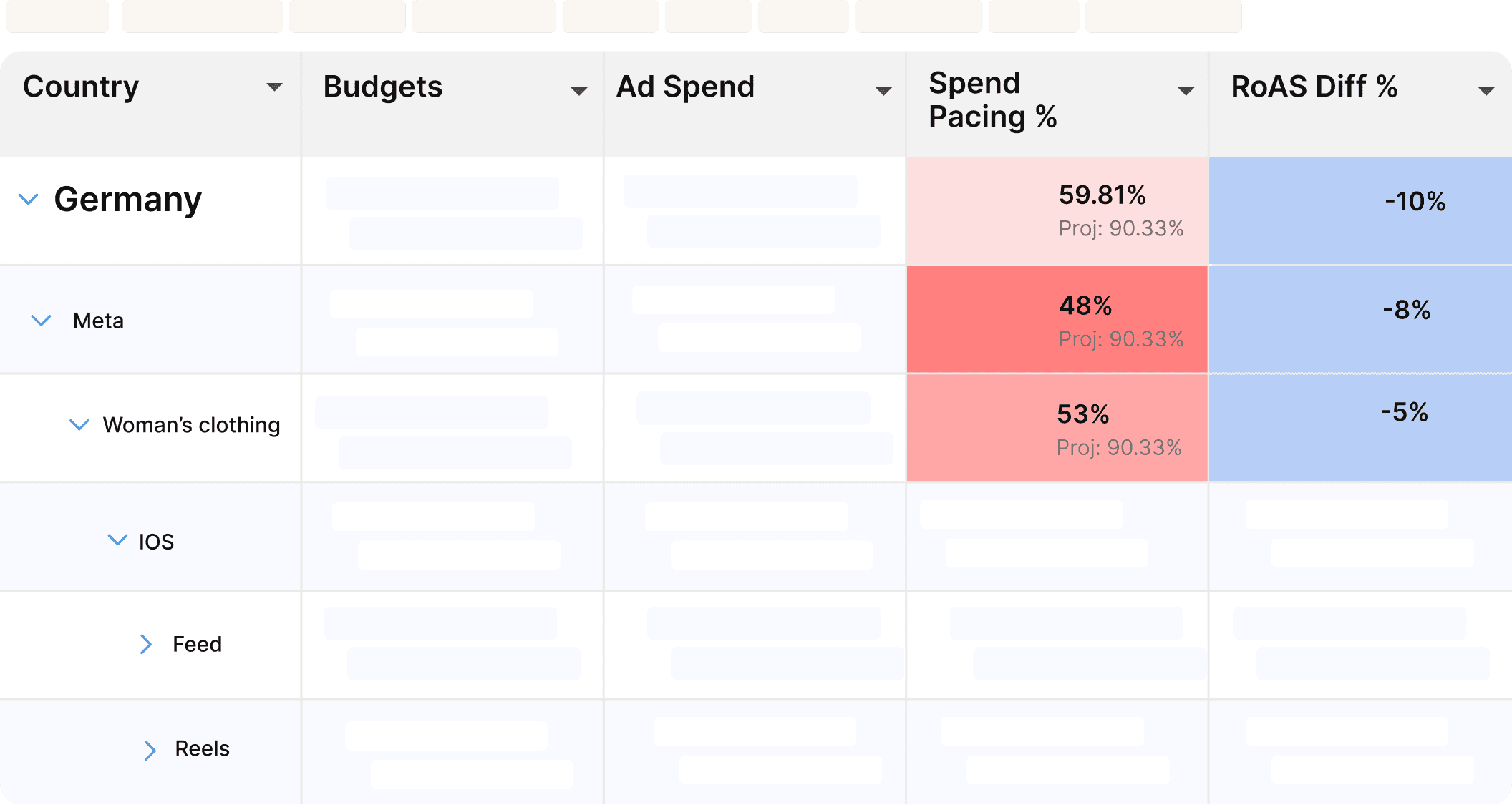 Slice and dice your Paid Social performance by country, channel, product line, feed vs. reels, and device type. Set up custom dimensions to filter by campaign type and goals, audience groups, content type, creative concepts, and more.