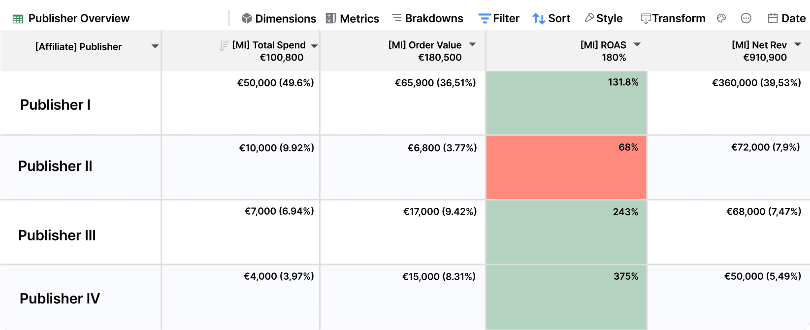 Track the performance of all affiliates, influencers, and partners in one consolidated view. Measure their true impact with automatically blended attribution, cost, MMP, and first-party data. Without having to overpay for affiliate management tools.